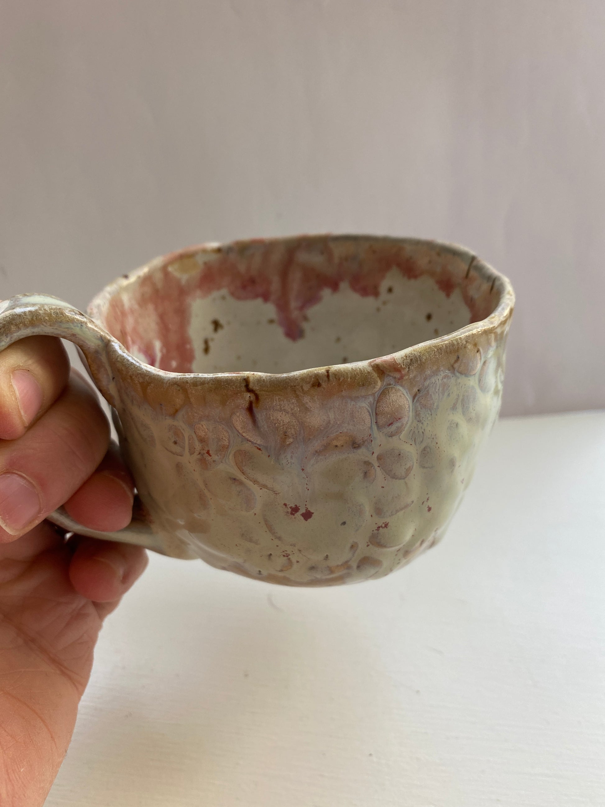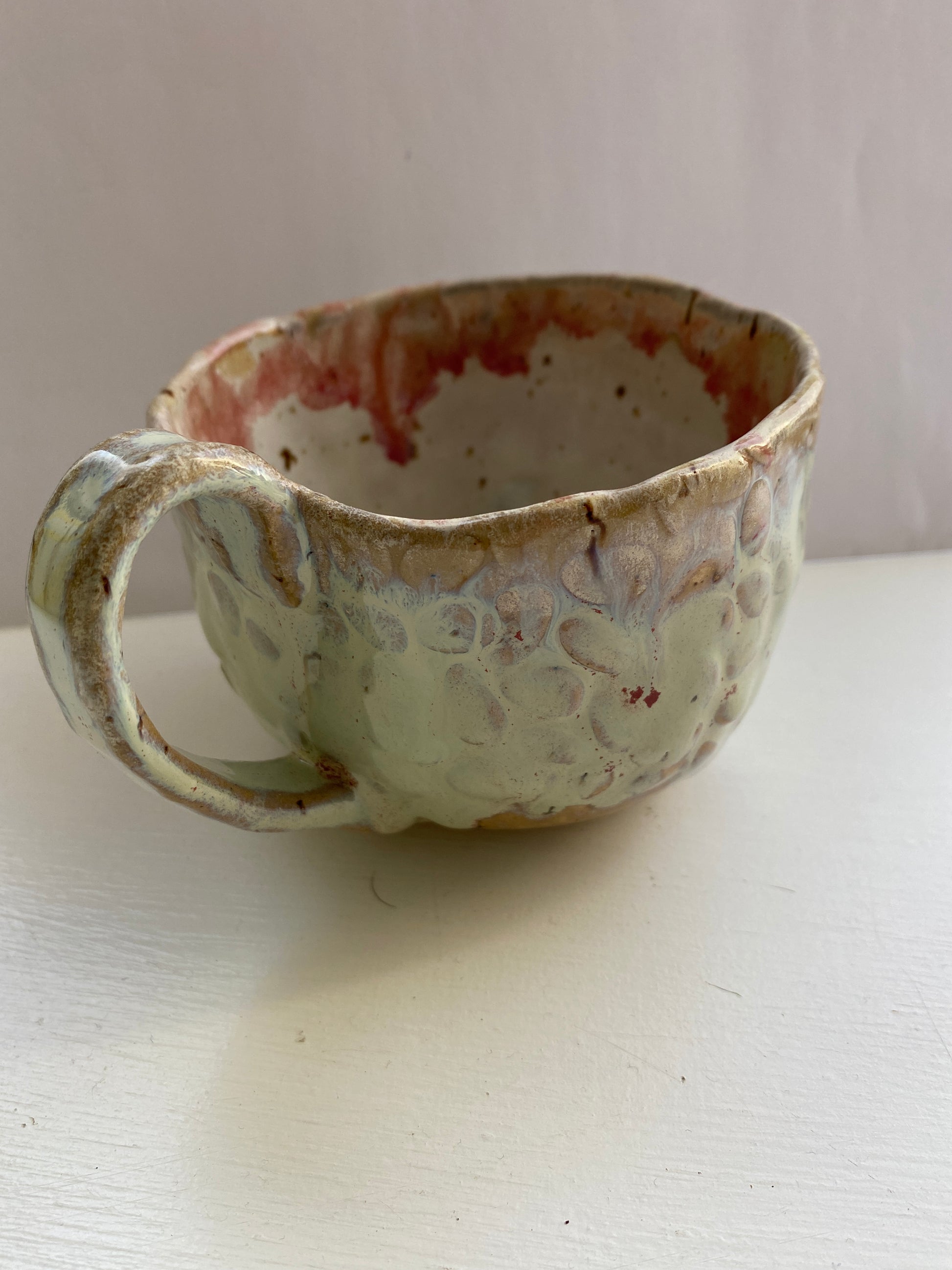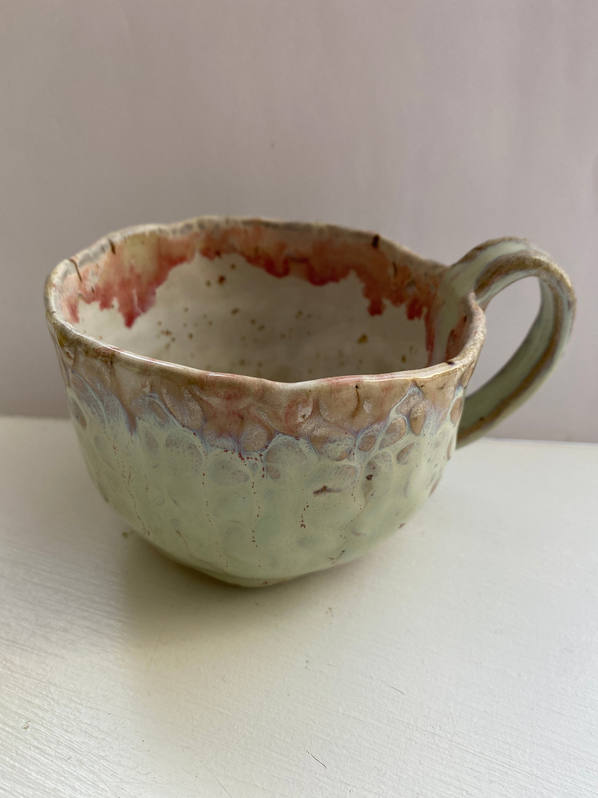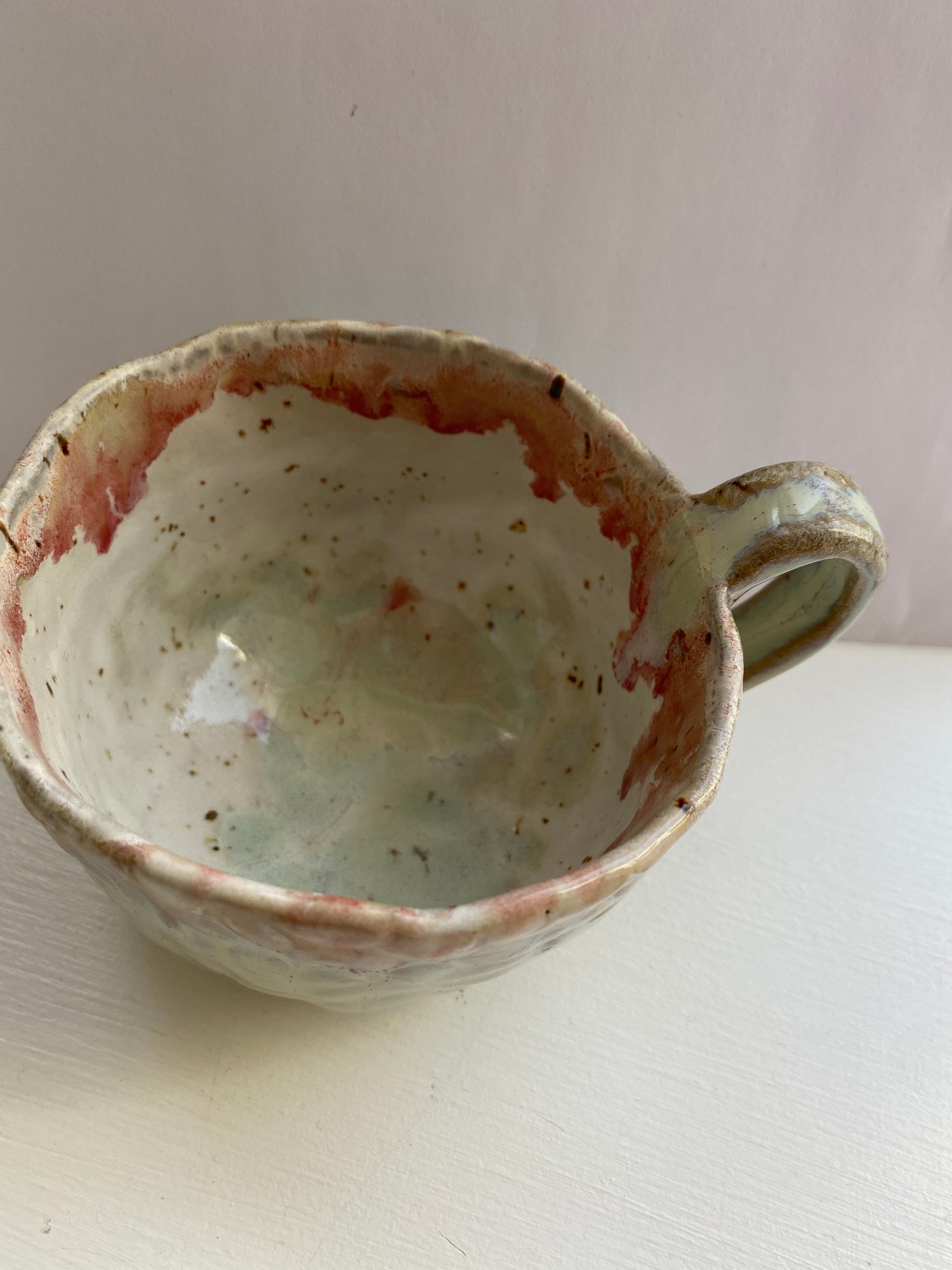 Smukke farver pebermynthe og rosa lavet af lavaler. Kop med hank 2,5 del.