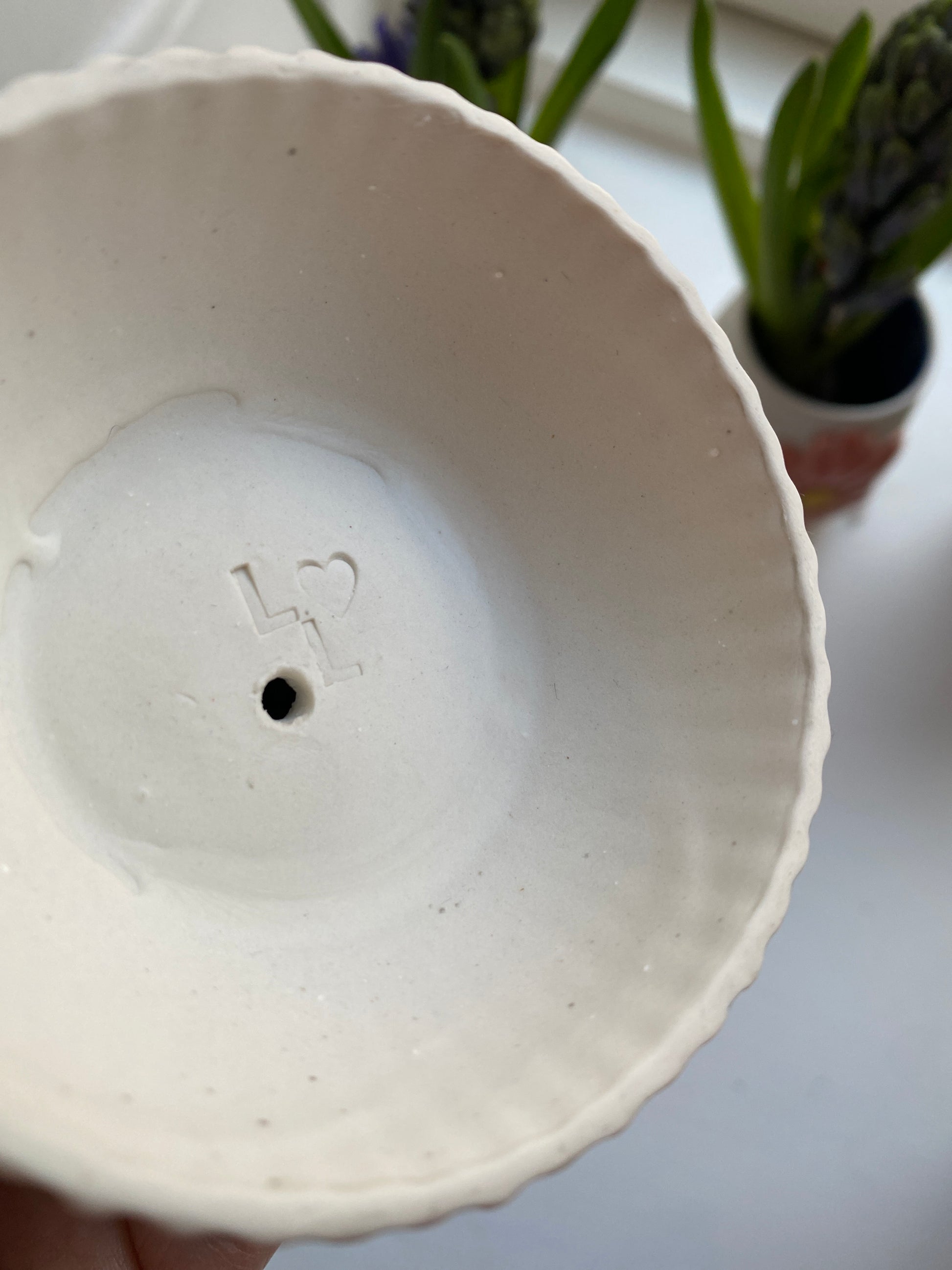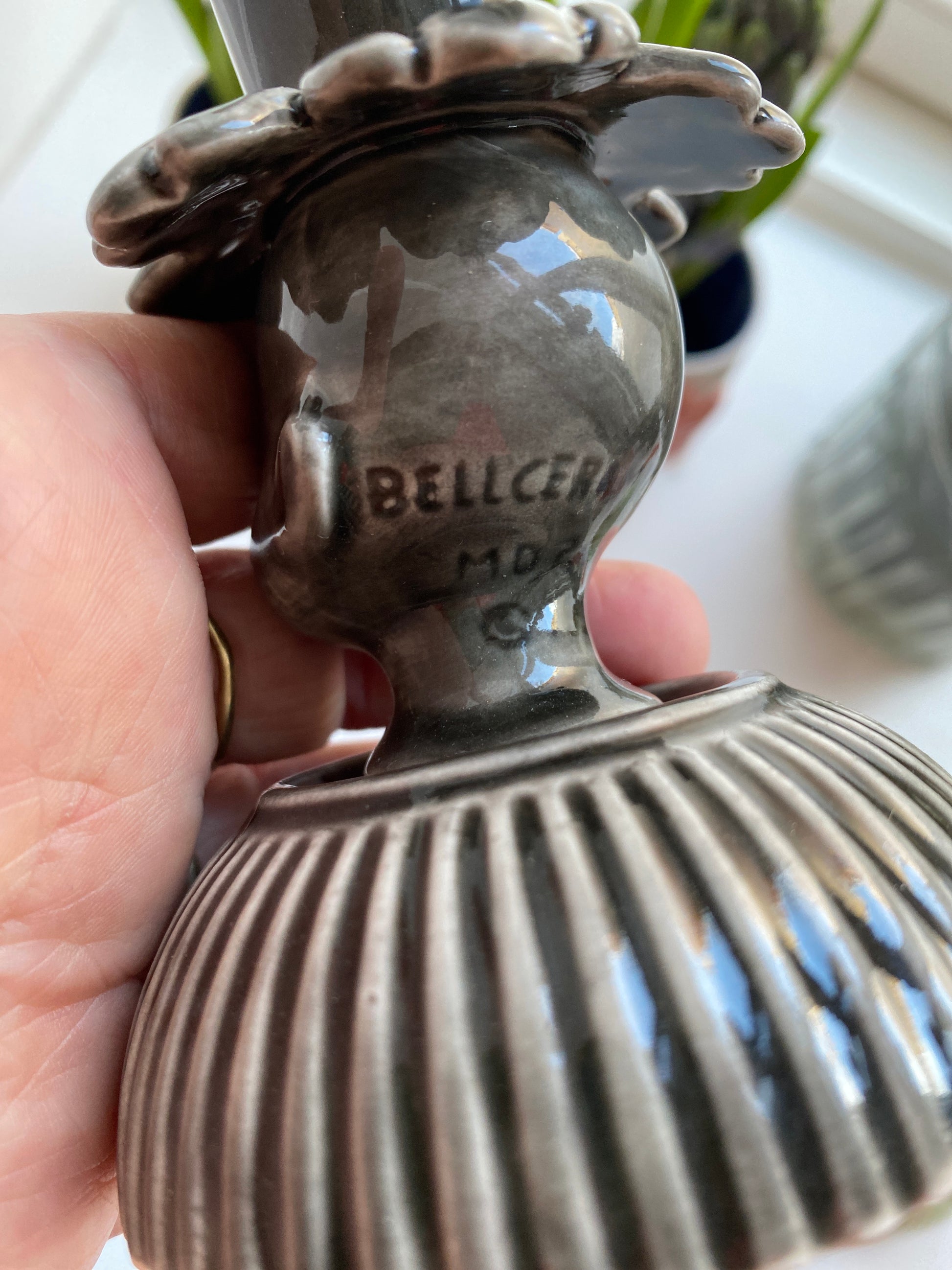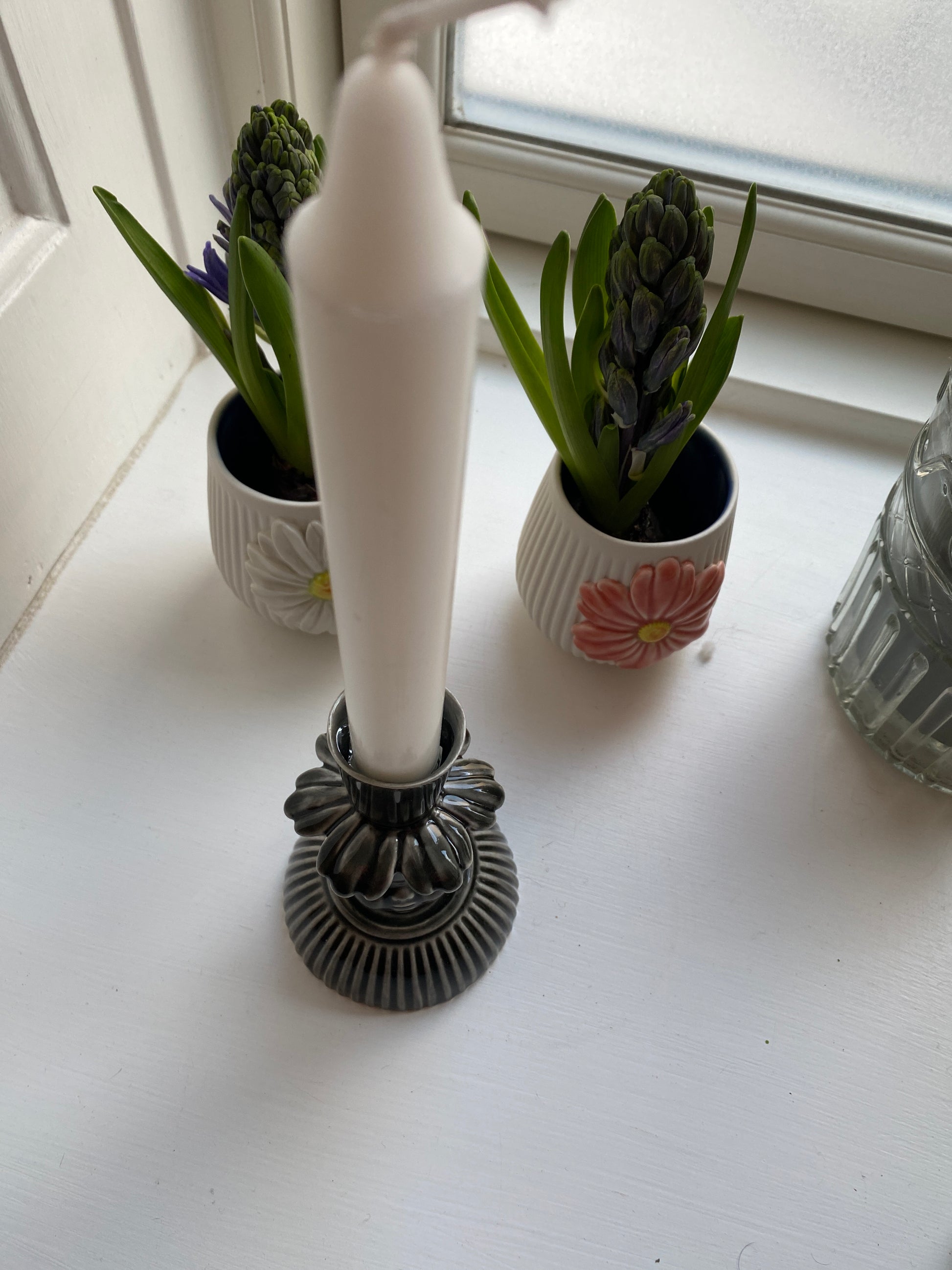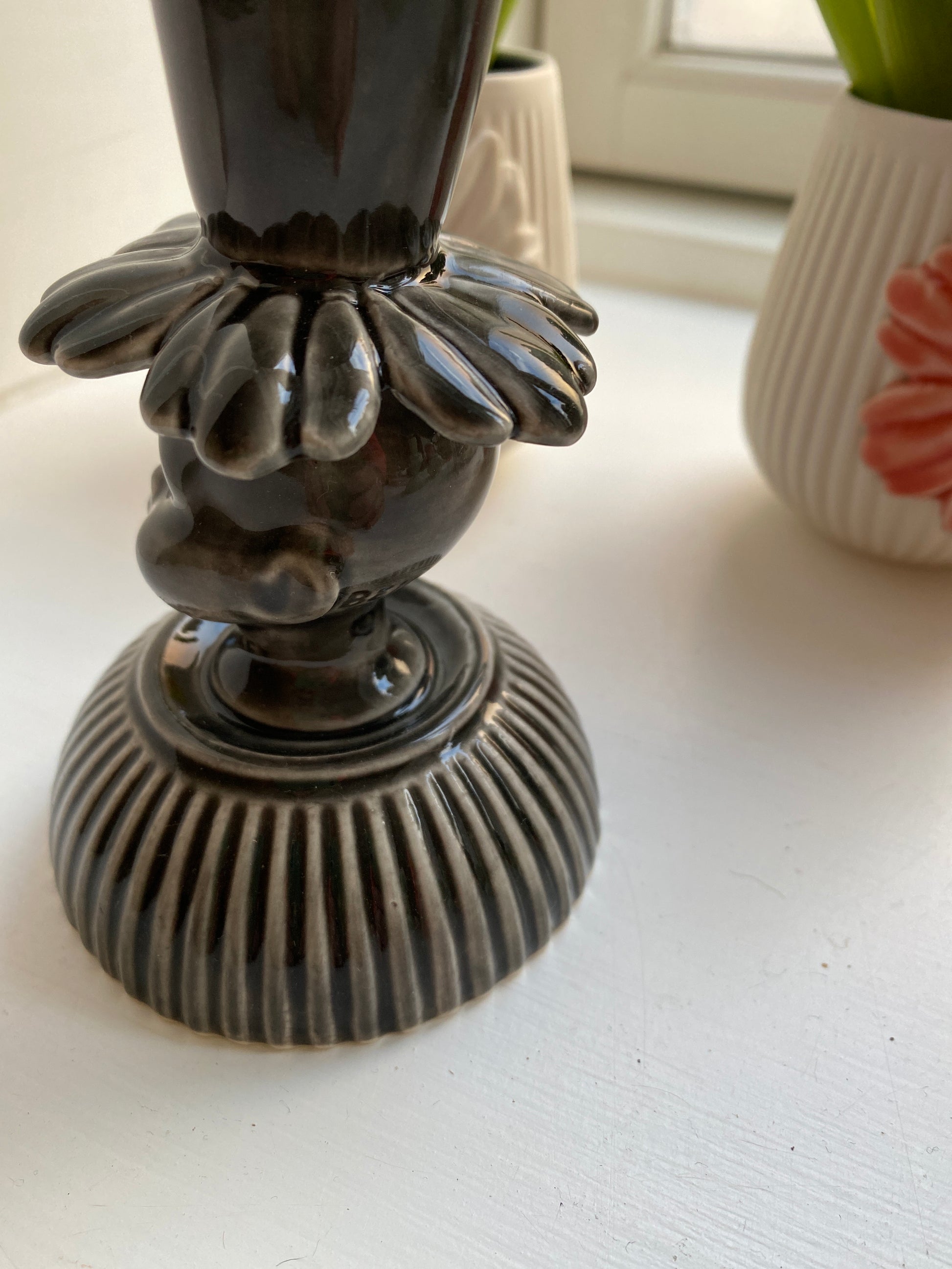 Stage med dukkehoved i porcelæn. 9,5 fine cm i sort / grå nuancer.
