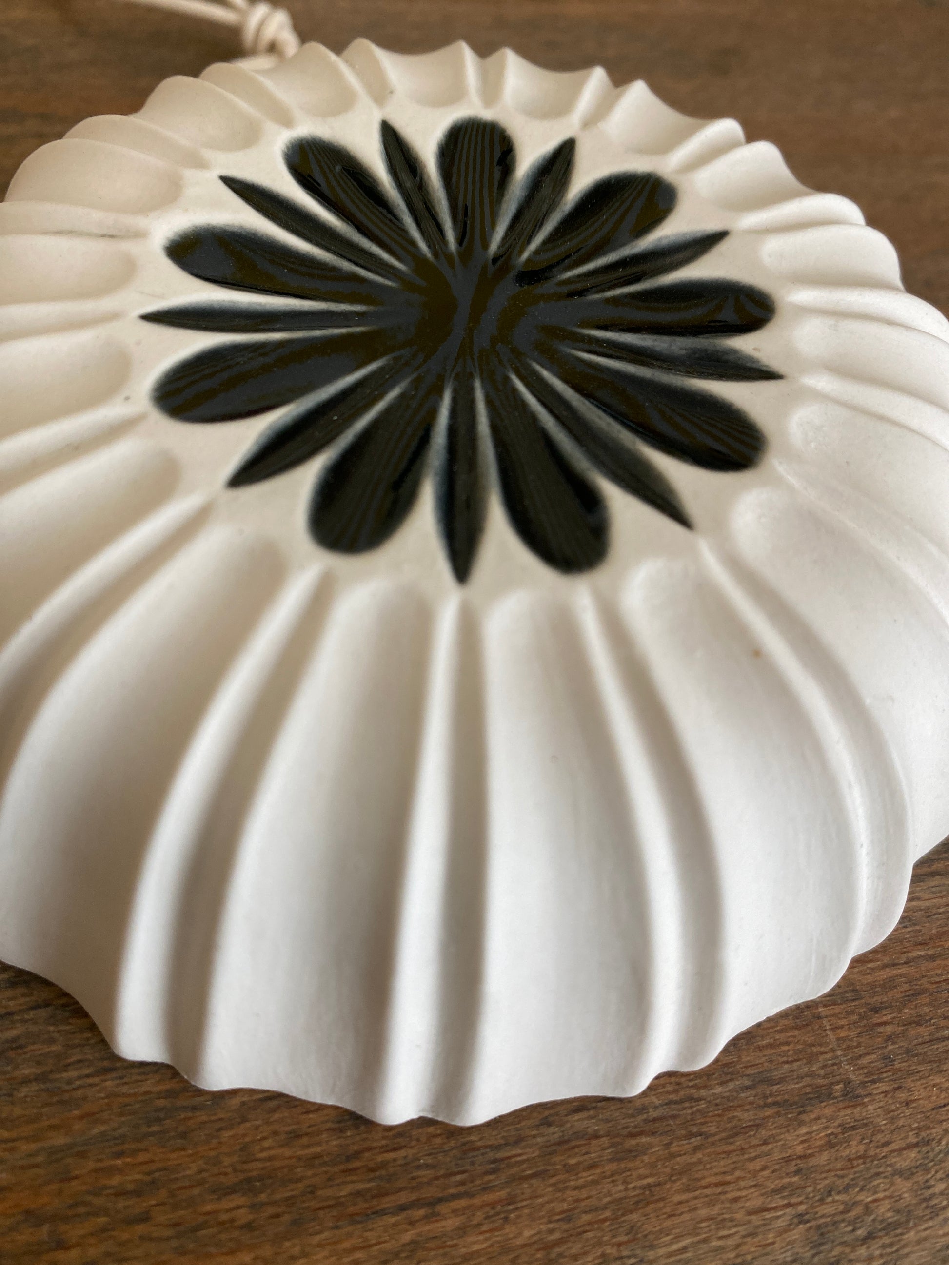 hvis porcelæn og sort glasur. Afstøbning af gammel skål.