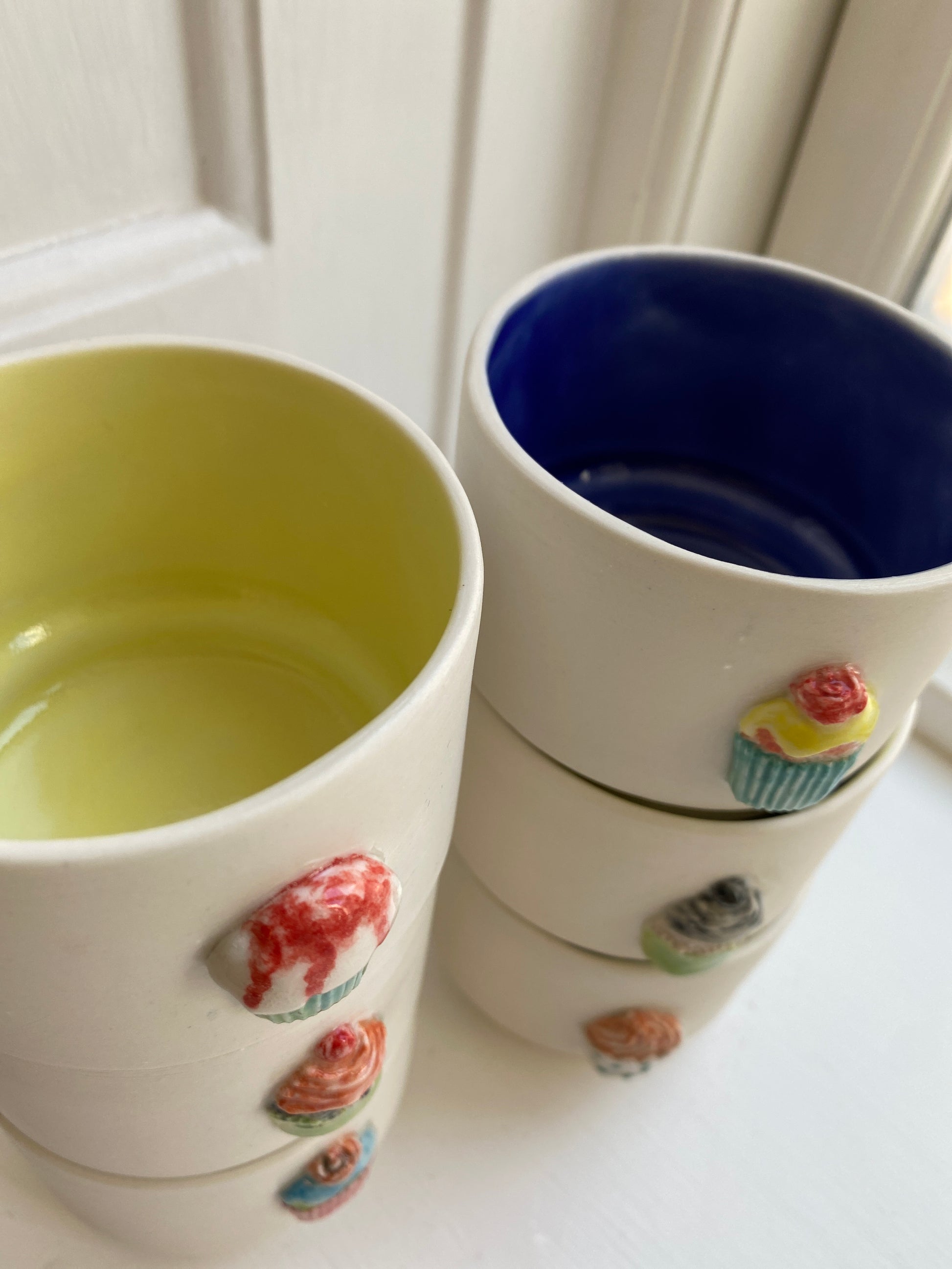 De fineste skåle til is og søde sager i porcelænsler. Blå indvendig.